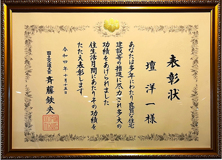 - 日本金属サイデイング工業会主催 第4回 全国外壁サイデイング。施工例写真コンテスト住宅部門 優秀賞受賞(新築部門・M邸)