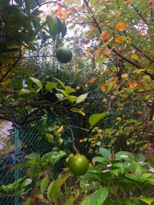 正月、お鏡餅の上に置きますがこの柑橘類が色づく頃には草花を植える前の工事は終わります。