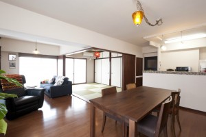 一覧 新築 戸建てリフォーム マンションリフォーム 店舗リフォーム ガーデニング 福岡市東区(S様邸) ~中古マンションをミッドセンチュリースタイルにリフォーム~ 和室とリビングの間には上吊レールタイプの引戸で間仕切り。 ダイニングはお気に入りのアンティークペンダントライト、リビングは硝子シェードのペンダントランプ。 夜になるとムードが出るそうです。 キッチン前の壁を取り払うことでダイニングへの視界がひろがりました。 キッチン前の腰壁にはブラウンの濃淡のモザイクタイルをあしらいました。 自然光がふりそそぐ明るい室内。それぞれの窓にはインナーサッシを取りつけました。 インナーサッシは防音、断熱に効果があるだけでなくフレームの色を内装材と近いものを選ぶことでインテリア性もアップします。 ≪ PREV 一覧へ NEXT ≫