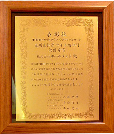 TDY2005全国リモデルセール九州支社賞
